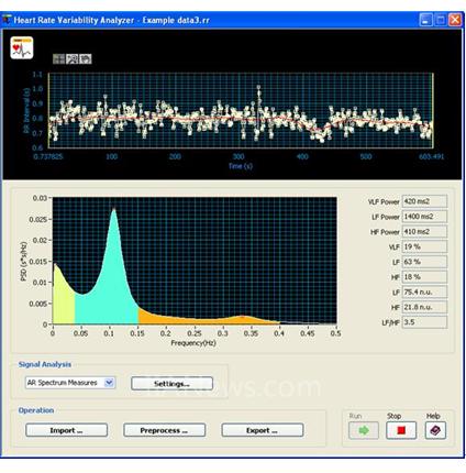 除利用LabVIEW自行開(kāi)發(fā)以外, NI也提供了最新的生物醫(yī)電起步工具包,其中已經(jīng)集成了ECG特征提取的算法及人機(jī)交互界面。參見(jiàn)圖10。工具包不僅支持NI數(shù)據(jù)采集平臺(tái)實(shí)現(xiàn)臨床心電信號(hào)的采集,也支持MIT-BIH等不同專(zhuān)業(yè)數(shù)據(jù)庫(kù)的文件格式讀??;另外,除了自帶小波分析的QRS波、P波和T波檢測(cè)外,也同時(shí)開(kāi)源并支持用戶(hù)自定義的算法;最后,ECG特征提取的結(jié)果可以導(dǎo)出到TDMS文件中。如需對(duì)信號(hào)做進(jìn)一步分析,如心率變異性分析(HRV)等,醫(yī)電工具包中同樣提供了現(xiàn)成的功能,供用戶(hù)直接調(diào)用,參見(jiàn)圖11。