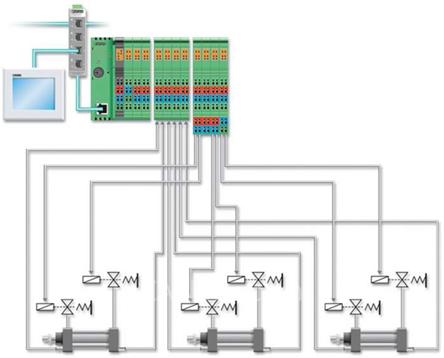 由于ILC 1xx可使用具有IP20保護(hù)等級(jí)的Inline安裝套件的I/O模塊進(jìn)行靈活擴(kuò)展,所有相關(guān)的傳感器及執(zhí)行器類型均可以在機(jī)械中使用。此外,具有IP65保護(hù)等級(jí)的分布式I/O模塊可實(shí)現(xiàn)至外圍設(shè)備的連接。在這兩種情況下,“以插拔代替接線”的連接方式使各站的組建工作更加簡(jiǎn)單,并縮短了系統(tǒng)安裝工時(shí)。由于I / O模塊小巧的安裝尺寸,這個(gè)自動(dòng)化解決方案可以降低成本,有效地適應(yīng)實(shí)際需要的功能。