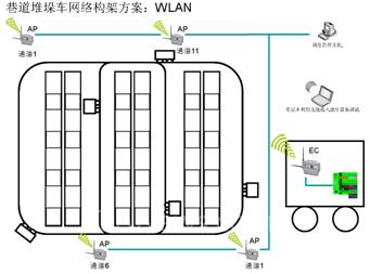 立庫的巷道堆垛車控制系統(tǒng)WLAN結構圖如下: