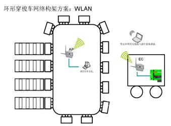 2、 每臺穿梭車上布置WLAN終端(FL WLAN 24 EC 802-11),控制系統(tǒng)或分布式遠程子站通過以太網(wǎng)接入無線網(wǎng)絡。