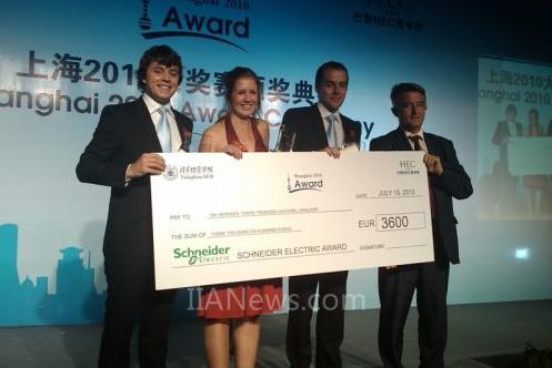 2010年7月15日—7月21日,法國巴黎HEC商學(xué)院與清華大學(xué)經(jīng)濟(jì)管理學(xué)院在中國上海大劇院聯(lián)合主持了上海2010“企業(yè)家精神與城市可持續(xù)發(fā)展”為主題的商業(yè)計劃國際大賽,并在賽后舉行了頒獎儀式。來自愛爾蘭都柏林大學(xué)邁克爾-斯莫非特商學(xué)院(UCD Michael Smurfit Graduate Business School)的一只參賽小組,以“太陽能發(fā)電樹”項(xiàng)目勇奪施耐德電氣獎。