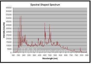 傳統(tǒng)上,對(duì)用在光譜儀上的光源的尖銳峰輸出是在光源上進(jìn)行處理的。例如在光源處使用機(jī)械裝置或?yàn)V光片的方法,這會(huì)產(chǎn)生比較大的光損失,特別是想要成批儀器性能一致時(shí),可能太昂貴或不切實(shí)際。專利的海洋光學(xué)光譜整形技術(shù)通過修改光譜儀內(nèi)部的設(shè)計(jì),使特定的光波長(zhǎng)或光譜帶被選擇性地衰減。這使得優(yōu)化光譜儀與光源配置變得更容易。
