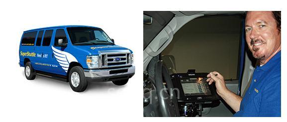 移動車載平板PC, , 裝備 GSM, GPRS, HSDPA, WCDMA Wi-Fi 和 Bluetooth功能,因此 SuperShuttle的司機(jī)可以隨時取得聯(lián)系,在他們?nèi)ト魏蔚胤降臅r候。接機(jī)位置的更新是和個人預(yù)訂信息的保留是實時連機(jī)的。隨同空間導(dǎo)航工具包 Telogis Geobase提供的功能,系統(tǒng)可以及時自動優(yōu)化路線。