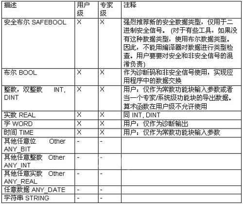 這個部分內容在PLC開放組織中,也進行了考慮。為了明確地區(qū)分安全相關信號和標準信號,定義了一個新的帶有診斷的“安全”數據類型。因此,編程人員能夠識別哪些信號是安全相關的,必須進行特殊的處理。此外,因為這個診斷數據連接能夠自動校驗, 檢測任何沒有許可的標準信號和安全相關信號的連接,雖然 “安全”數據類型不能保證信號的狀態(tài)是否安全 (比如:外圍設備不正確的接線),但不管怎樣,使用一個管理工具可以使應用程序實現的錯誤最少。 加之,當發(fā)布應用程序時,能夠清晰的分辨安全相關信號,簡單而快速地進行安全信號的校驗。安全數據類型是在安全相關環(huán)境中的可應用的數據類型,這些數據類型用于區(qū)分安全信號和非安全信號,也容易用于校驗和確認的目的。