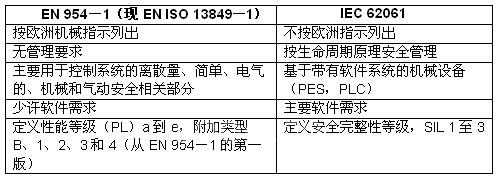 下表歸納了兩個(gè)機(jī)械安全標(biāo)準(zhǔn)的一些基本的不同。