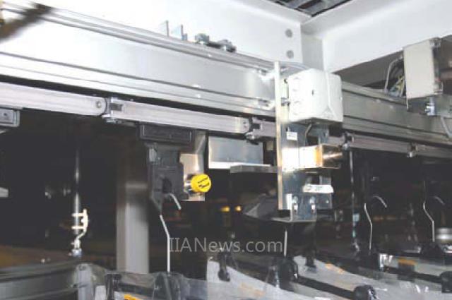 系統(tǒng)采集數(shù)據(jù),決定每條褲子的運(yùn)送路線。依照這一路線計(jì)劃,滑道將相應(yīng)的褲子送出產(chǎn)品隊(duì)列,以備按照訂單發(fā)貨。這些產(chǎn)品由電磁隨機(jī)存儲(chǔ)器揀出,它能將運(yùn)輸滑道推送至岔軌。