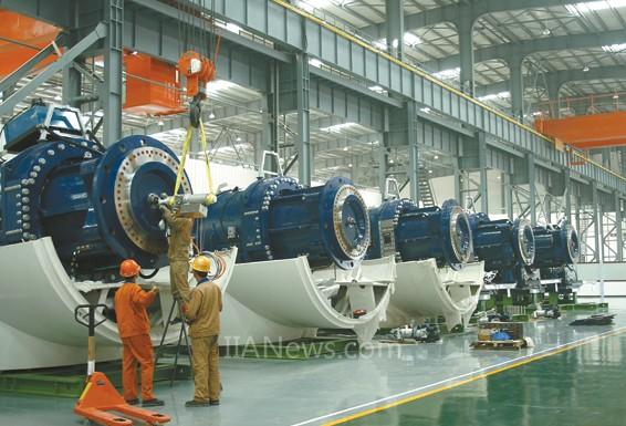 華銳風電鹽城產(chǎn)業(yè)基地1.5兆瓦風電機組裝配現(xiàn)場