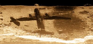 由StarFish 990F 聲納成像的一架Hawker Siddeley HS-748, G-BVOV 飛機(jī)。聲納投射到海底形成的聲影區(qū)能夠清晰地顯示飛機(jī)的輪廓細(xì)節(jié),包括駕駛室、機(jī)翼、和尾翼