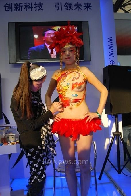 展位現(xiàn)場,研祥集團請來人體彩繪大師現(xiàn)場作畫,以這種前衛(wèi)、新興的藝術(shù)形式寓意研祥引領(lǐng)特種計算機行業(yè)不斷創(chuàng)新發(fā)展的企業(yè)文化理念。然而如果說人體彩繪藝術(shù)讓參觀者大開眼界的話,研祥自主研發(fā)制造的特種計算機JNB-1401淋水試驗和JMC-1102水下實驗則更是讓人嘆為觀止了。
