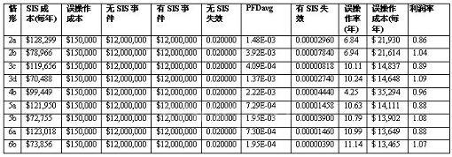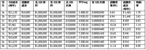 表 4 – SIS 生命周期成本分析概要 - $10,000 誤操作成本