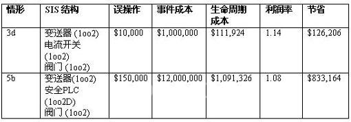 另一個工具是按商業(yè)原則計算利潤率,判斷是否選擇了“最佳”的安全儀表系統(tǒng)結(jié)構(gòu)。如果利潤率大于1,系統(tǒng)具有投資效益。比如,一個系統(tǒng)具有1.5的利潤率,每投資 $1.00,系統(tǒng)會收回 $1.50。