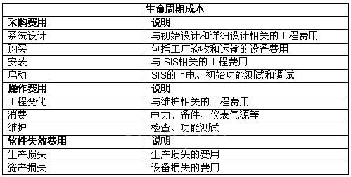 生命周期成本是為選擇的安全儀表系統(tǒng)貫串整個生命周期所有發(fā)生的費用,而不僅僅是原始購買系統(tǒng)的費用。這對可能發(fā)生重大設(shè)備失效的成本是特別重要的。這個評估目的是概括所有采購和擁有安全儀表系統(tǒng)在生命跨度中的費用。采購費用在項目的生命期間僅有一次。操作費用會在安全儀表系統(tǒng)生命過程中不斷發(fā)生和反復(fù)出現(xiàn)。與系統(tǒng)失效相關(guān)的費用占據(jù)了生命周期成本的大部分。