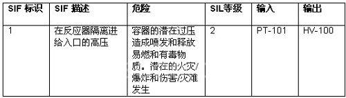 企業(yè)已經(jīng)完成他們的初始風(fēng)險分析,并且對批處理反應(yīng)器相關(guān)的SIL等級進行了選擇。團隊確定使用一個單一安全儀表功能(SIF)的設(shè)備用于這個特殊單元的操作。結(jié)果如下表所示: