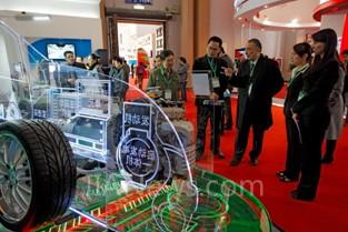 臺(tái)達(dá)技術(shù)專(zhuān)家為參觀者講解電動(dòng)車(chē)