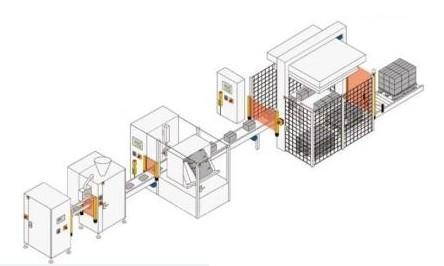 一條封裝流水線經(jīng)過實(shí)際配置后,能夠提升安全性能。橙色區(qū)域代表了一些能夠降低風(fēng)險(xiǎn)并增加效率的技術(shù)。本圖片由Pilz提供。