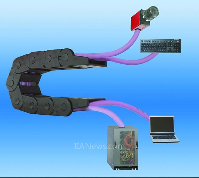 用于拖鏈的總線電纜的主要任務(wù),就是確保即使在數(shù)百萬個(gè)運(yùn)動(dòng)循環(huán)后,仍然能滿足相關(guān)總線協(xié)議傳輸特性。易格斯公司稱可為所有總線協(xié)議提供相應(yīng)的解決方案。從Profibus,DeviceNet,CC-Link到CAN-Bus,USB到所有以太網(wǎng)類型,包括GigE。它們適合于標(biāo)準(zhǔn)和極限應(yīng)用,比如扭轉(zhuǎn)。在極高數(shù)據(jù)傳輸率和長(zhǎng)行程的情況下,銅不再是首選,易格斯推薦玻纖和塑纖光纜。