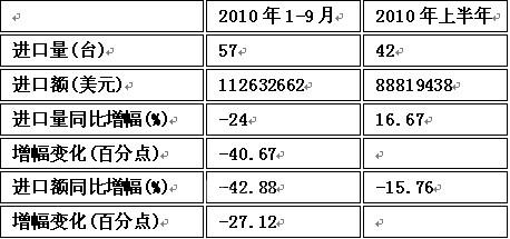 表2:2010年1-9月起重機(jī)進(jìn)口量變化