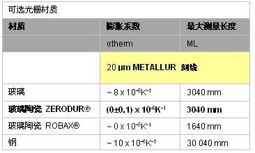 制造光柵尺的材料通常為:鋼、玻璃或玻璃陶瓷。這些材料的膨脹系數(shù)可在資料中查閱。
