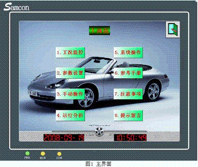 從主控畫面可選擇進入各控制及運行畫面等。在主畫面上,可以看到各處操作畫面以及監(jiān)控畫面等。