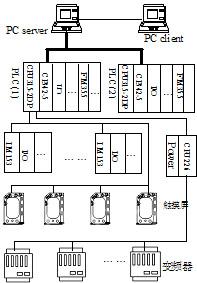 由于系統(tǒng)比較復(fù)雜,控制采取分層控制策略,由兩臺(tái)上位機(jī)完成工廠級(jí)的監(jiān)控及數(shù)據(jù)管理功能,觸摸屏和PLC完成現(xiàn)場(chǎng)級(jí)的控制,采用Profibus現(xiàn)場(chǎng)總線的方式進(jìn)行通訊。上位機(jī)留有接口,可連接局域網(wǎng)和廣域網(wǎng),以利于進(jìn)一步的開發(fā)。其中數(shù)字輸入點(diǎn)有900多點(diǎn),數(shù)字輸出有400多點(diǎn),模擬量輸入20 個(gè)。