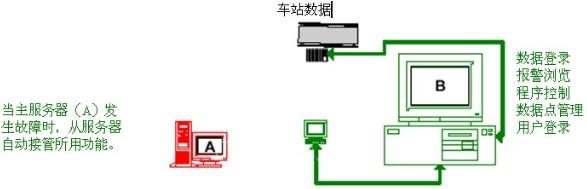 兩套性能相同的專業(yè)服務(wù)器對(duì)整個(gè)整個(gè)網(wǎng)絡(luò)的數(shù)據(jù)進(jìn)行處理,并作為網(wǎng)絡(luò)內(nèi)其它計(jì)算機(jī)的共享資源。系統(tǒng)正常工作時(shí),主、備服務(wù)器中,一臺(tái)主用,另一臺(tái)備用??刂泼顑H通過主服務(wù)器發(fā)出。主、備服務(wù)器均能接收來自車站的各種上行數(shù)據(jù)。