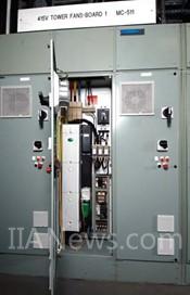 Jon Scott是電站運(yùn)營(yíng)公司(px有限公司)的高級(jí)電氣控制工程師,他說:“我們要為Q501冷卻塔的一個(gè)系統(tǒng)更換6臺(tái)兩段速電機(jī),而且考慮到葉片、軸承和齒輪箱上的沖擊負(fù)荷會(huì)造成維護(hù)難題,我們還要提供可行的維護(hù)方案。將變速驅(qū)動(dòng)器的花費(fèi)與無法改進(jìn)的交流感應(yīng)電機(jī)花費(fèi)(前者為后者的20%)作比較時(shí),兩種方案的底線基本一樣,但是變速驅(qū)動(dòng)器具有的其他優(yōu)勢(shì)使該方案更具吸引力。為了使這個(gè)項(xiàng)目性價(jià)比更高,我們希望繼續(xù)使用已有的控制柜,但是它尺寸狹小。只有一家驅(qū)動(dòng)產(chǎn)品供應(yīng)商 – 艾默生CT– 能夠提供我們需要的產(chǎn)品,他們提供的驅(qū)動(dòng)器可適應(yīng)我們的緊湊安裝?!?BR> 在不同負(fù)載和環(huán)境條件下,進(jìn)水溫度平均在30°C,冷卻后,出水溫度約為16.5°C。發(fā)電站水流量為8,000 kg 每秒(一小時(shí)可填滿12個(gè)奧運(yùn)會(huì)游泳池),需提供約460 MW的冷卻功率。該冷卻功率由22個(gè)風(fēng)機(jī)提供。這些風(fēng)機(jī)產(chǎn)生的氣流量約為10,500 kg 每秒(相同流量需20,400個(gè)家用風(fēng)扇)。