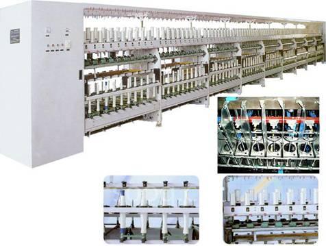 由放卷電機將上錠絲線放出,收卷電機下錠卷繞捻線,通過觸摸屏設(shè)定升降領(lǐng)板動程、斜邊高、差移量等參數(shù)確定步進電機左右行程定位參數(shù),從而達到收卷不同形狀捻線筒;不同絲線的捻合度由觸摸屏設(shè)定的放卷變頻電機速度和收卷變頻電機速度確定。從單絲加捻、并合、復合加捻等工藝,在同一機器上一次完成,實現(xiàn)生產(chǎn)的產(chǎn)品達到萬米無結(jié)頭的要求。