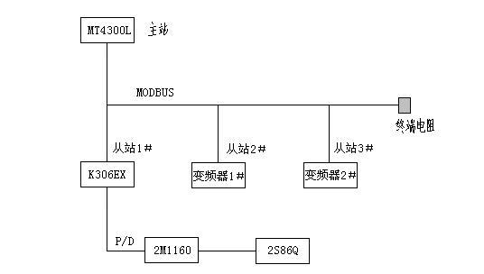 由HMI作為主站,通過MODBUS總線連接三個從站(1個PLC、2個變頻器)。PLC的高速脈沖輸出功能實現(xiàn)對步進驅(qū)動器的控制。 其中通過HMI的兩個RS485/RS232通訊口,分別與PLC和變頻器通訊,分擔了PLC實時通訊的負擔,網(wǎng)絡(luò)結(jié)構(gòu)非常簡潔。