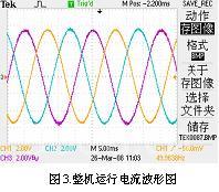 在做試驗時發(fā)現(xiàn)隨著整機電流的增加,整機效率成增加之勢,整機諧波電流成減小之勢。圖3 為整機回饋電網(wǎng)電流2000A時的三相電流波形圖。通過檢測設備得知饋網(wǎng)電流完全滿足國家標準。