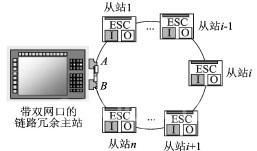 EtherCAT冗余技術(shù)采用環(huán)型冗余結(jié)構(gòu) ,也就是將最后一個ESC節(jié)點連接到主站.要實現(xiàn)這個功能 ,需要主站具有2個以太網(wǎng)接口 ,見圖 3.