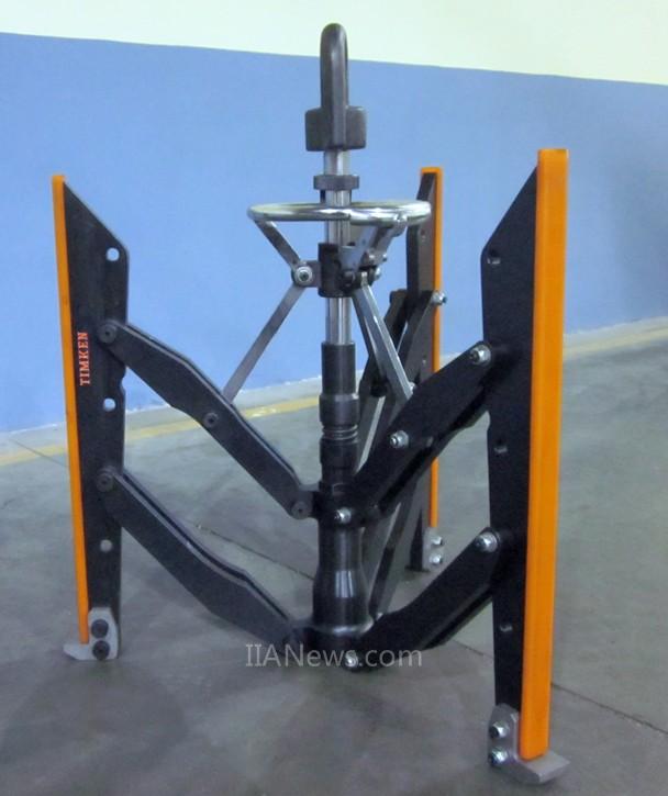 隨著近年來我國冶金、采礦、水泥、發(fā)電等行業(yè)的快速發(fā)展,對大型設(shè)備需求日益增長,起重設(shè)備吊裝工具的市場需求也隨之不斷提高。目前,一些工業(yè)操作現(xiàn)場經(jīng)常會使用自制的簡易安裝吊具,存在一定的安全隱患,其便攜性與操作簡易程度也往往不盡如人意。鐵姆肯公司為客戶度身定造的此款折疊式軸承專用吊具應(yīng)運而生,及時滿足了一些重點行業(yè)客戶尋求操作簡易、安全可靠的安裝及拆卸重型軸承解決方案的迫切需求。