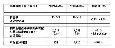 2010年銷售數(shù)據(jù)中包含約7500萬歐元的將要停止開展的非核心、無利潤業(yè)務(wù)。