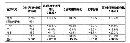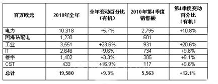 新興經(jīng)濟(jì)體的銷售額在第4季度同比增長15%,在2010年所報告的全年銷售額(包括阿海琺配電)中占到37%。