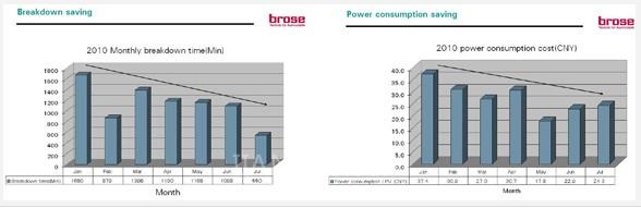 ?? 下圖為武漢博澤2010年設(shè)備故障和能源消耗的趨勢圖。圖表顯示,在維護改進項目啟動后博澤在降低成本費用上所取得令人鼓舞的成績。