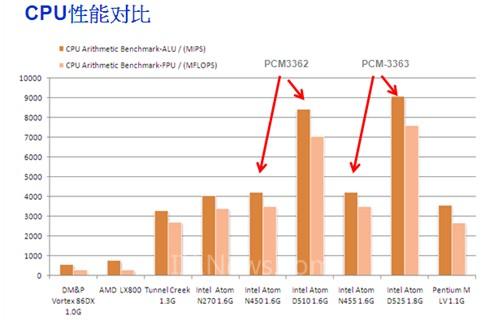 以下是PCM-3363的性能對比,從圖中我們可以看到,在PC/104嵌入式主板的諸多平臺中,PCM-3363的性能表現(xiàn)最好,它的發(fā)布無疑是有力的填補(bǔ)了PC/104嵌入式主板中沒有低功耗高性能平臺的空白,給系統(tǒng)集成商及工程師們帶來了一個(gè)很好的選擇。