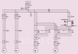 (2)恒壓供水控制。循環(huán)方式控制水泵恒壓運(yùn)行;變頻,工頻自動(dòng)轉(zhuǎn)換:系統(tǒng)用水量超過水泵的額定供水量時(shí),水泵自動(dòng)轉(zhuǎn)為工頻運(yùn)行,同時(shí)自動(dòng)變頻啟動(dòng)另一臺(tái)水泵運(yùn)行,共同向系統(tǒng)供水。若用水量又趨于下降到單臺(tái)水泵的額定供水量時(shí),原工頻運(yùn)行的水泵停止工作,變頻工作的水泵在新的頻率下單獨(dú)向系統(tǒng)供水。如果系統(tǒng)主泵數(shù)小于2臺(tái),則此過程依次輪換。當(dāng)變頻器控制的電機(jī)滿足不了設(shè)定流量要求,此時(shí)變頻器輸出頻率逐漸上升,直到工作在設(shè)定的上限頻率,如壓力仍達(dá)不到設(shè)定值,由可編程控制器,通過PID運(yùn)算得到輸出量給發(fā)出速度控制指令。如系統(tǒng)用水量超過水泵的額定供水量時(shí),水泵自動(dòng)轉(zhuǎn)為工頻運(yùn)行,同時(shí)自動(dòng)變頻啟動(dòng)另一臺(tái)水泵運(yùn)行,共同向系統(tǒng)供水。若用水量又趨于下降到單臺(tái)水泵的額定供水量時(shí),原工頻運(yùn)行的水泵停止工作,變頻工作的水泵在新的頻率下單獨(dú)向系統(tǒng)供水。如果系統(tǒng)主泵數(shù)小于2臺(tái),則此過程依次輪換。