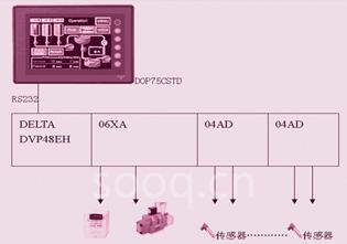 人機(jī)界面選取臺(tái)達(dá)7.5”彩色觸摸屏。人機(jī)界面(HMI)可顯示工藝流程、工藝參數(shù)和設(shè)備狀態(tài),HMI圖形接口友好,只需直接對(duì)圖示進(jìn)行手動(dòng)點(diǎn)觸操作,因此操作簡(jiǎn)便靈活。
