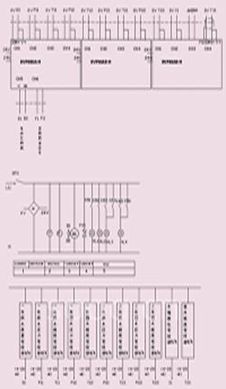 主控制器選用PLC,自動(dòng)化程度高,簡(jiǎn)化了線路。開關(guān)量(包括啟動(dòng)停止按紐,限位,故障,頻率檢測(cè)等)輸入24點(diǎn);輸出10點(diǎn);模擬量檢測(cè)11路(壓力.溫度,水位);模擬量輸出2路.分別控制變頻器和比例閥,控制系統(tǒng)壓力和流量。主控制電路如圖2所示。