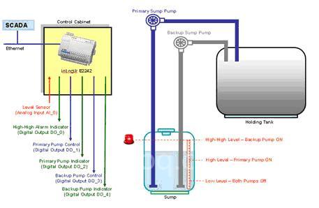 更好的選擇是使用閉環(huán)控制中央監(jiān)測監(jiān)控系統(tǒng)(SCADA 系統(tǒng))。在這種情況下,使用傳感器連接到控制器以控制泵的開啟和關(guān)閉,傳感器用來檢測水位,控制器用來控制水泵的運(yùn)轉(zhuǎn)。當(dāng)傳感器檢測到水位達(dá)到高位或者低 位的時候,應(yīng)當(dāng)觸發(fā)本地的報(bào)警機(jī)制,并開啟或者關(guān)閉水泵。而且水泵控制還必須實(shí)現(xiàn)遠(yuǎn)程手動控制或者本地的自動控制。
