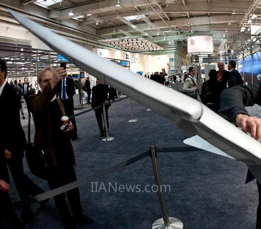 一名工程師展示超輕型飛行器“SmartBird”模型