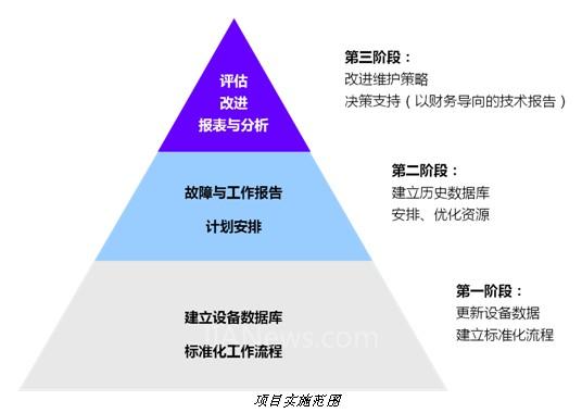 隨后,Siveco為上海依視路實(shí)施了一套計(jì)算機(jī)化的維護(hù)管理系統(tǒng)COSWIN來(lái)輔助工廠的維護(hù)改進(jìn)項(xiàng)目。該項(xiàng)目主要分為三個(gè)階段,具體實(shí)施范圍請(qǐng)見(jiàn)下圖。同時(shí),Siveco專(zhuān)業(yè)的維護(hù)工程師團(tuán)隊(duì)也全程參與到了項(xiàng)目的具體實(shí)施中,幫助依視路安裝系統(tǒng)并對(duì)最終系統(tǒng)用戶進(jìn)行了一系列上崗培訓(xùn)。在經(jīng)歷了4個(gè)月的忙碌后,COSWIN系統(tǒng)正式上線并能成功導(dǎo)出技術(shù)財(cái)務(wù)報(bào)表來(lái)為管理層的決策提供支持。