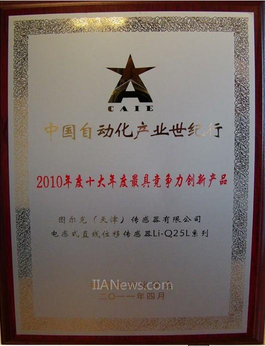 圖注:圖爾克Li-Q25L系列電感式直線位移傳感器產品榮獲年度最具競爭力創(chuàng)新產品獎