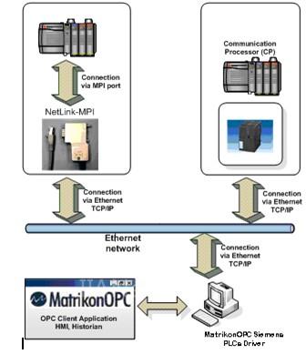 MatrikonOPC Server for Siemens S7 PLCs 通過(guò)以太網(wǎng)提供實(shí)時(shí)數(shù)據(jù),它支持以下方式連接: