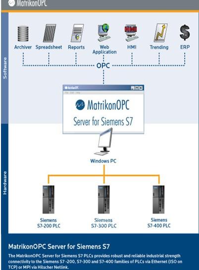 MatrikonOPC Server for Siemens S7 PLC可以通過(guò)西門子PLC的MPI(PPI)端口或以太網(wǎng)接口為西門子S7-200,S7-300和S7-400系列PLC提供強(qiáng)大的實(shí)時(shí)通訊連接,該OPC服務(wù)器引入了新的設(shè)置向?qū)?,該向?qū)У挠押媒缑婵梢詭椭脩艉芊奖愕母鶶iemens PLC建立連接。