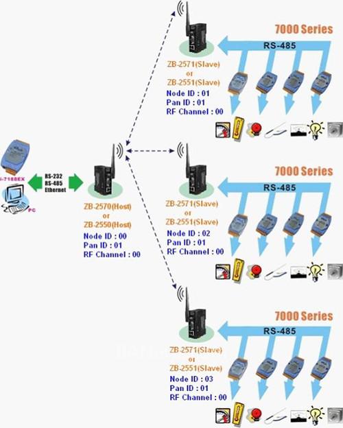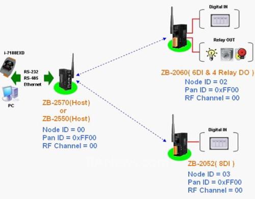 圖6 ZigBee與I-7000模塊應(yīng)用框圖