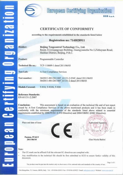 要想在歐盟市場(chǎng)上自由流通,就必須加貼“CE”標(biāo)志。CE認(rèn)證一直是“中國制造”產(chǎn)品進(jìn)入歐盟市場(chǎng)的主要門檻。日前,騰控科技T9系列寬溫以太網(wǎng)可編程控制器,T910、T910S、T920 等幾款產(chǎn)品于近日正式通過CE認(rèn)證。