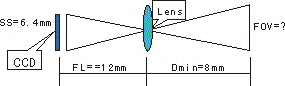 如:SS=6.4mm,Dmin=8in,F(xiàn)L=12mm pixel=640*480