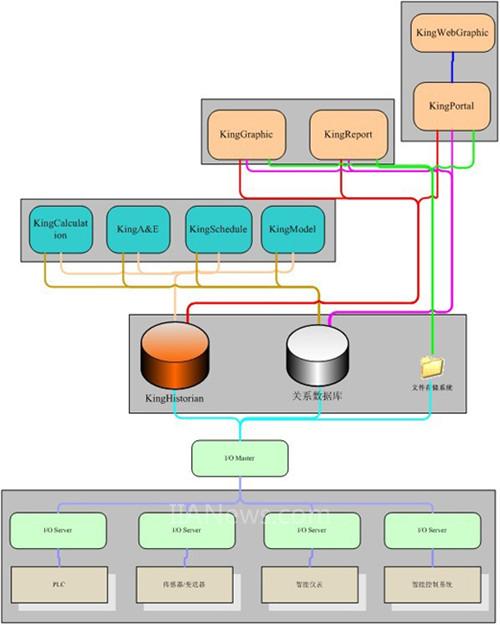按照以上標(biāo)準(zhǔn),亞控公司提供了I/O Server與I/O Master組成的數(shù)據(jù)采集平臺(tái);KingHistorian、關(guān)系數(shù)據(jù)庫與文件存儲(chǔ)組成數(shù)據(jù)存儲(chǔ)平臺(tái);KingCalculation、KingA&E、KingSchedule、KingModel組成數(shù)據(jù)分析應(yīng)用平臺(tái);KingGraphic、KingReport、KingPortal組成的數(shù)據(jù)展示平臺(tái)。