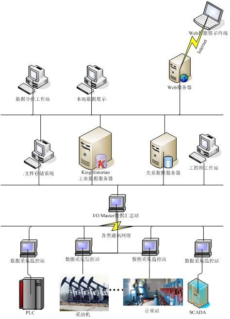 數(shù)據(jù)服務(wù)中心采用北京亞控的KingHistrian實(shí)時(shí)/歷史工業(yè)庫作為數(shù)據(jù)存取平臺(tái),采用商用的關(guān)系數(shù)據(jù)庫(SQL Server、Oracle、MS Access等)存儲(chǔ)報(bào)警等事件數(shù)據(jù);同時(shí),為了采集部署在全國各地的設(shè)備數(shù)據(jù),需要部署I/O Master作為匯總采集服務(wù)器,匯總所有的設(shè)備數(shù)據(jù),傳入KingHistorian、關(guān)系數(shù)據(jù)庫、文件存儲(chǔ)系統(tǒng),完成原始數(shù)據(jù)存儲(chǔ)。