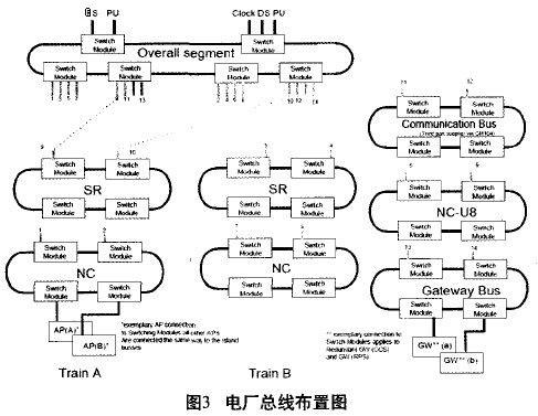 終端總線構(gòu)建為一個(gè)主網(wǎng)絡(luò)和一個(gè)子網(wǎng)絡(luò)。主網(wǎng)絡(luò)在物理上分布在不同的電子間和計(jì)算機(jī)問(wèn)內(nèi)。子網(wǎng)絡(luò)與總網(wǎng)絡(luò)之間的連接使用冗余熱備連接,使用光纖作為連接介質(zhì)。同時(shí)西門子工業(yè)網(wǎng)絡(luò)產(chǎn)品OSMOSM分布在不同的I&C機(jī)柜內(nèi)并且使用獨(dú)立的供電。所有連接在終端總線上的設(shè)備(如Pu,SU)都是分別與不同的OSMXH連,分布在不同的I&C機(jī)柜內(nèi)并且使用獨(dú)立的供電。